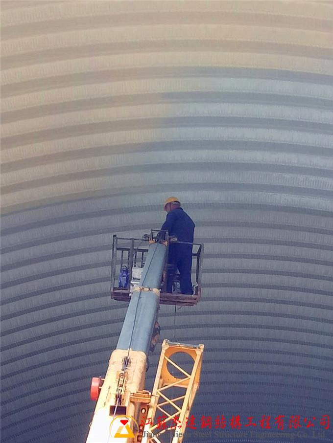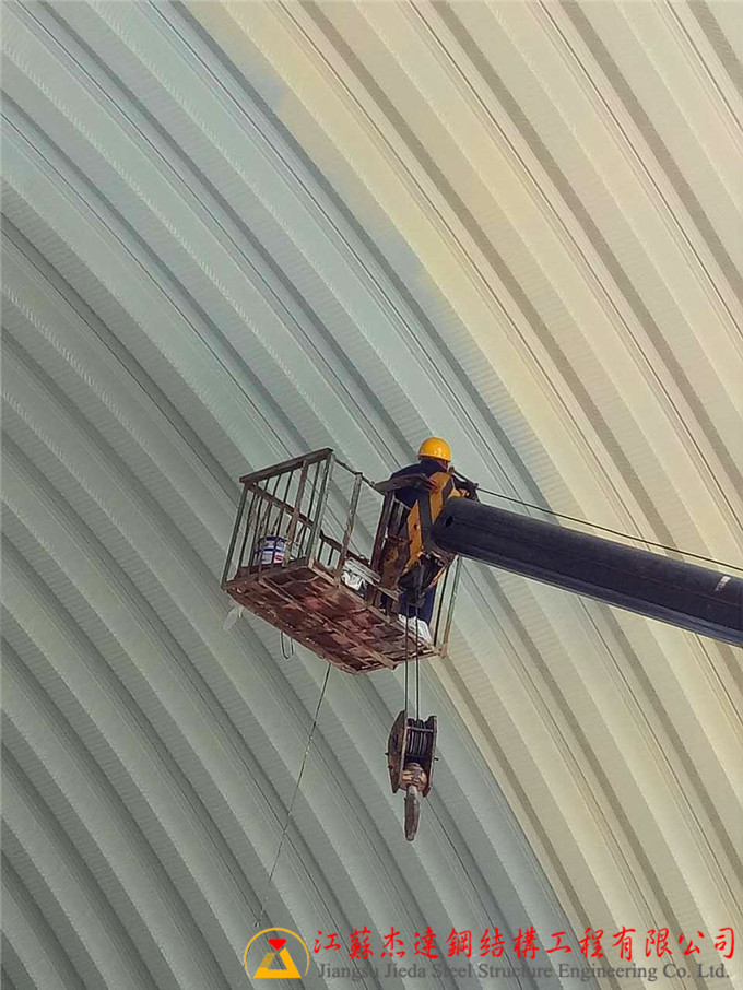 部分业主,尤其是化工业主,通常会要求对拱形屋顶的背面进行防腐油漆喷涂,以保护钢结构免受腐蚀影响。一般情况下,防腐油漆由业主提供,施工方则以清包工的方式负责喷涂工作,确保施工质量符合使用需求。