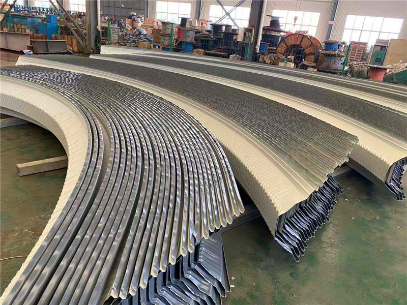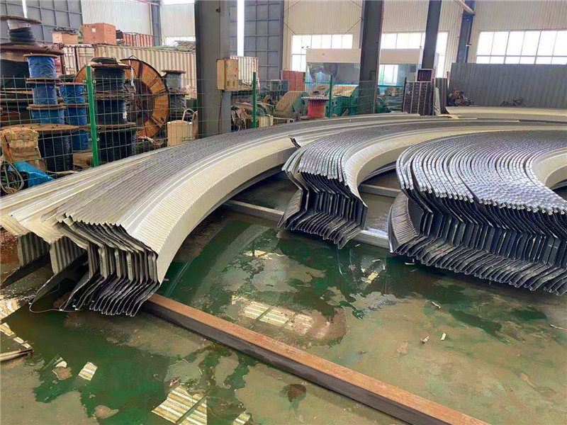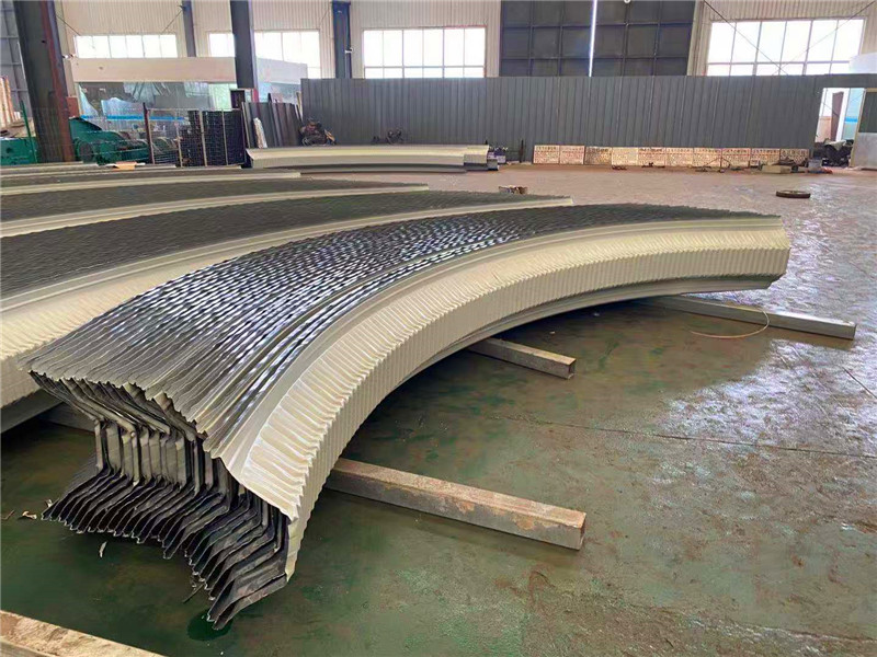 本次拱形屋顶单元板工程主要服务于某出口型厂房的建筑改造升级,客户对结构稳固性、现场加工效率及防护性能提出了较高要求。根据需求,江苏杰达钢结构工程有限公司选用了厚度为1.2mm的钢板原材料,压制成宽度为0.61m的成型瓦片,并采用现场弯板压型技术进行施工。