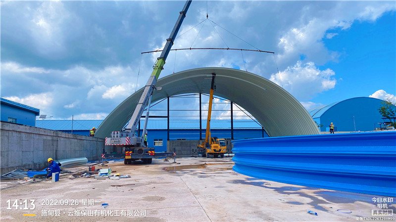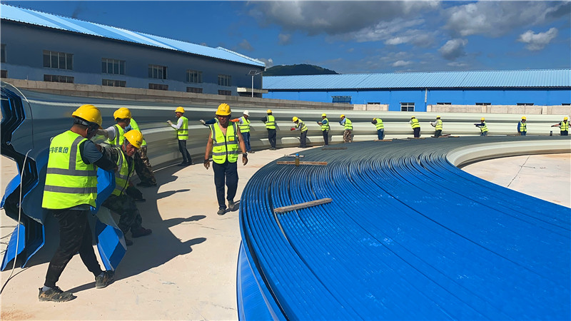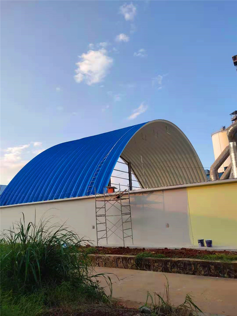 项目完工后,建设单位与业主单位联合进行验收,各项指标符合合同要求,施工结果获得认可。拱形屋盖安装严密、排水顺畅、结构牢固,适应华新水泥料棚严苛的工业使用环境。