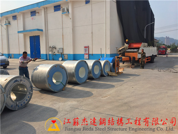 屋面材料选用了厚度为0.8毫米的灰蓝色TS320GD-Z高强彩涂卷,具备较好的耐候性和美观性。彩钢板通过专用设备加工成型,保证了拱形屋顶的精确度和安装效率。