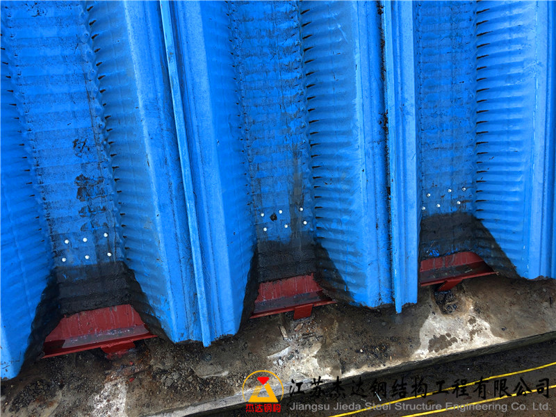 翻建的拱形屋顶托板已更换为8毫米厚的铁板,并涂刷了红色防锈油漆,提高了结构的耐久性和防护性能。施工细节体现出对工程质量的重视。